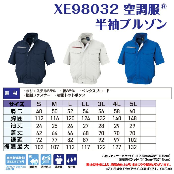 空調服 ジーベック 作業服 作業着 空調服 ジーベック XEBEC 作業服 春夏 XE98032 半袖ブルゾン S-5L 単品 作業着