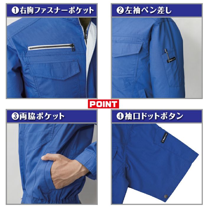 ◇機能:遮熱性・透け防止・速乾性・吸汗性・左袖ペン差し・両胸面ファスナーポケット・両脇ポケット・左内側バッテリーポケット・首元の調整ヒモで空気の抜けを調節