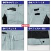 ◇機能:バイオペット・伸縮素材・帯電防止・男女兼用・NEWピタリティ・JIS T8118帯電防止作業服適合商品・のびのびストレッチ・左胸ポケット脇ペン差し付・左袖ペン差し・長財布もスッポリ入る深めのファスナーポケット・胸フラップポケットは面ファスナー仕様・裾は2段階に調節できるアジャスター付・左右内ポケット