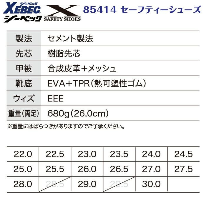 ジーベック XEBEC 作業服 安全靴 85414 セーフティーシューズ 22-30 作業着