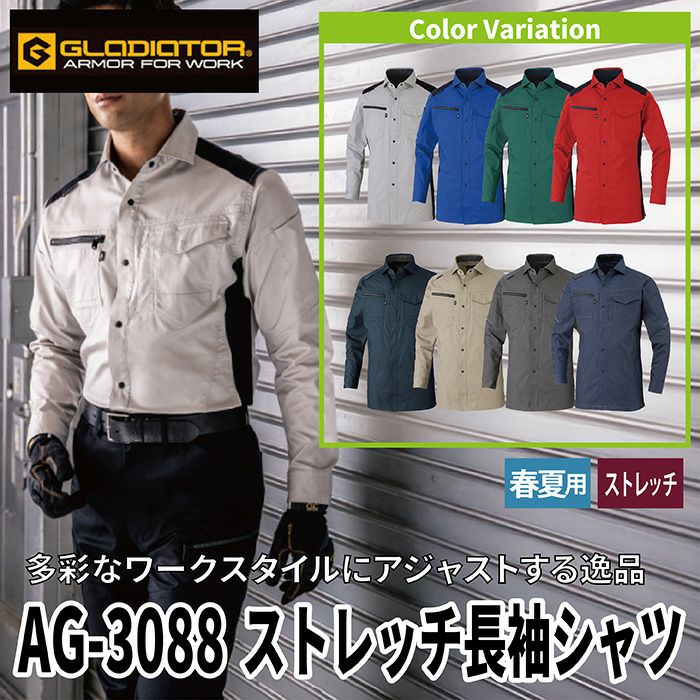 コーコス 作業服 作業着 コーコス 作業服 春夏 AG-3088 ストレッチ長袖シャツ SS-LL 作業着 CO-COS