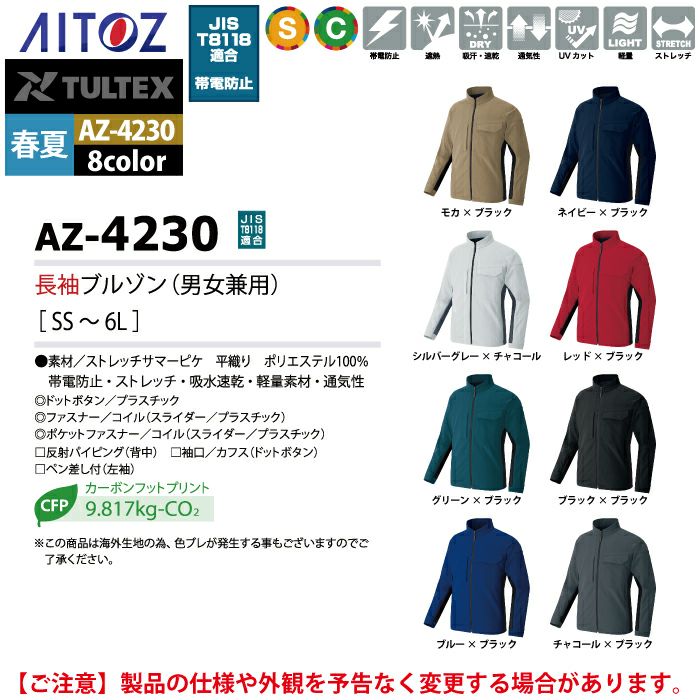 作業服 作業着 アイトス Aitoz 作業服 AZ-4230 長袖ブルゾン 6L 春夏用