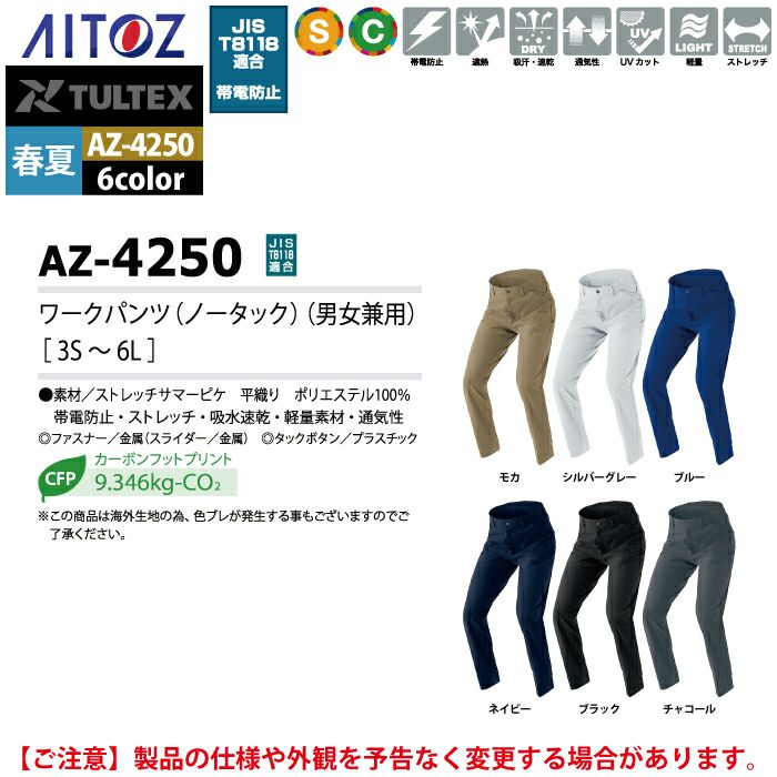 作業服 作業着 作業ズボン アイトス Aitoz 作業服 作業ズボン AZ-4250 ワークパンツ 3L-4L 春夏用