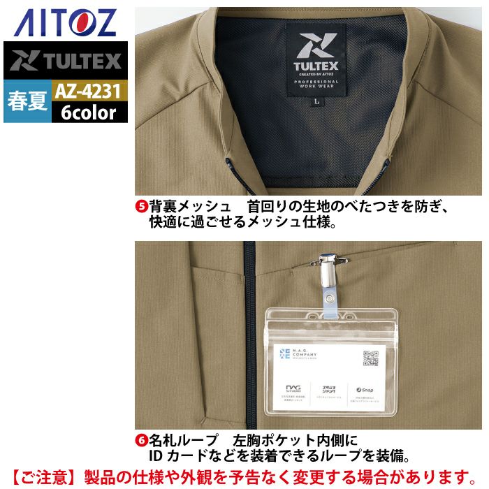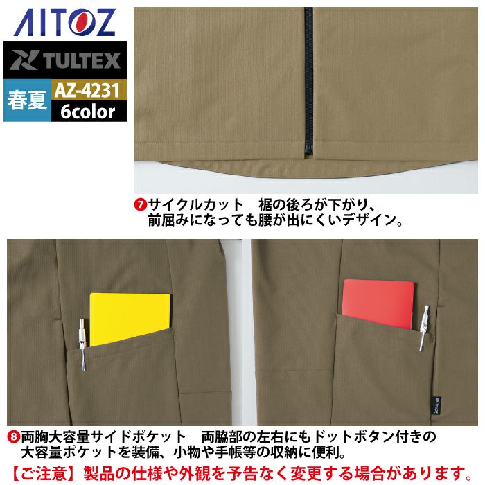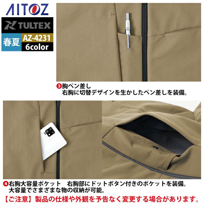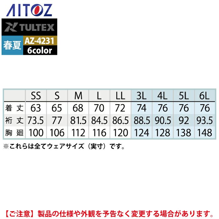 作業服 作業着 アイトス Aitoz 作業服 AZ-4231 長袖ブルゾン 6L 春夏用