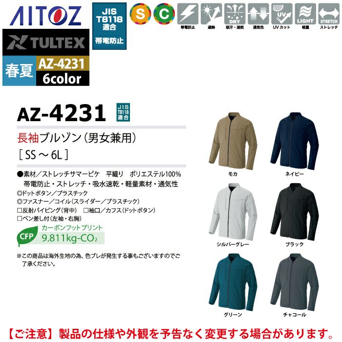 作業服 作業着 アイトス Aitoz 作業服 AZ-4231 長袖ブルゾン SS-LL 春夏用