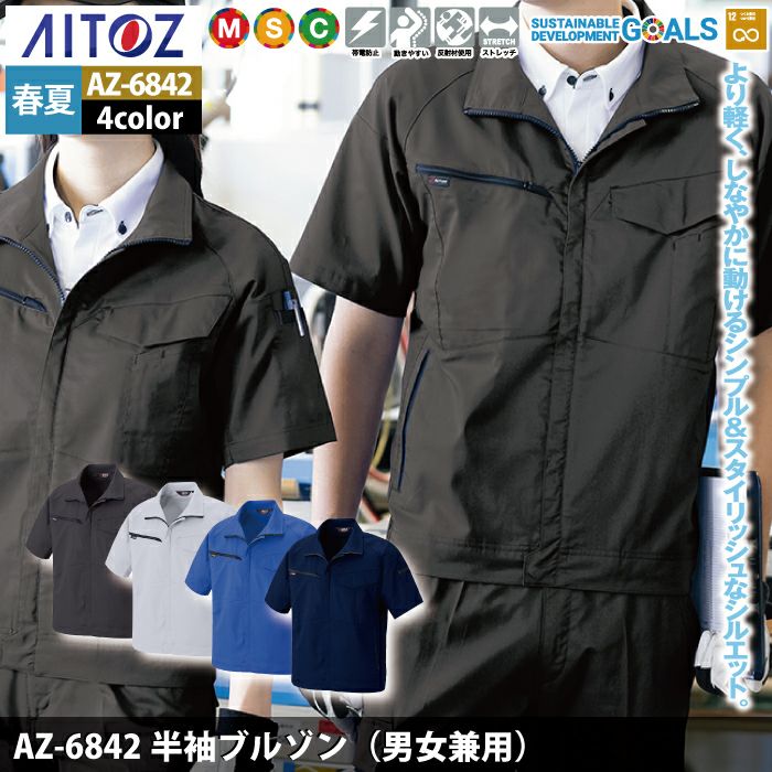 作業服 作業着 アイトス Aitoz 作業服 AZ-6842 半袖ブルゾン SS-LL 春夏用