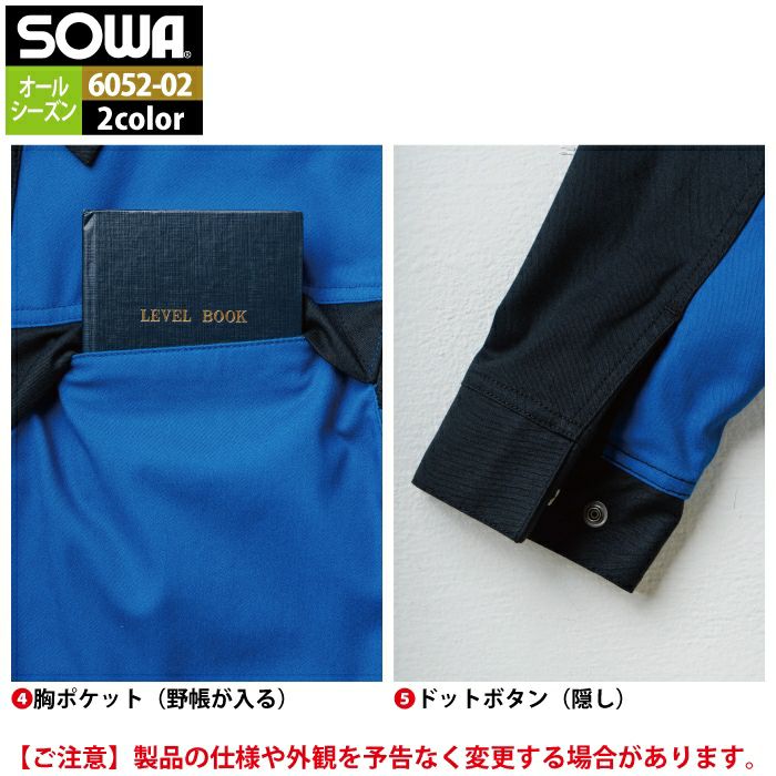 桑和 SOWA 作業服 作業着 作業ズボン 桑和 SOWA 作業服 6052-02 長袖シャツ SS-LL 作業着 春夏