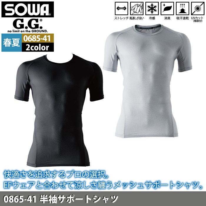 桑和 SOWA 作業服 作業着 作業ズボン 桑和 SOWA 作業服 インナー 0685-41 半袖サポートシャツ S-3L 作業着 春夏用