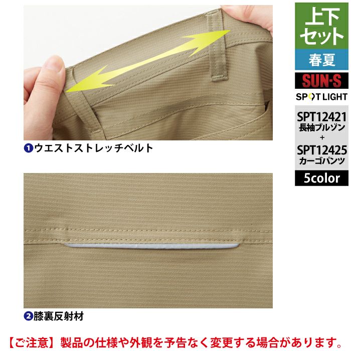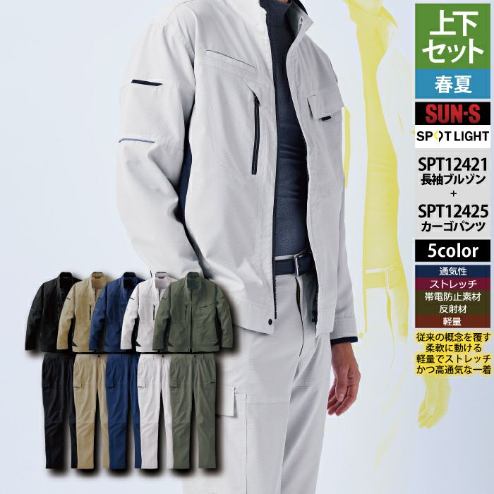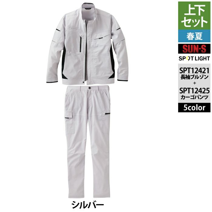 サンエス 作業服 作業着 サンエス 作業服 上下セット 春夏 SPT12421 長袖ブルゾンM-3L と SPT12425 カーゴパンツ 3S-3L 作業ズボン 作業着