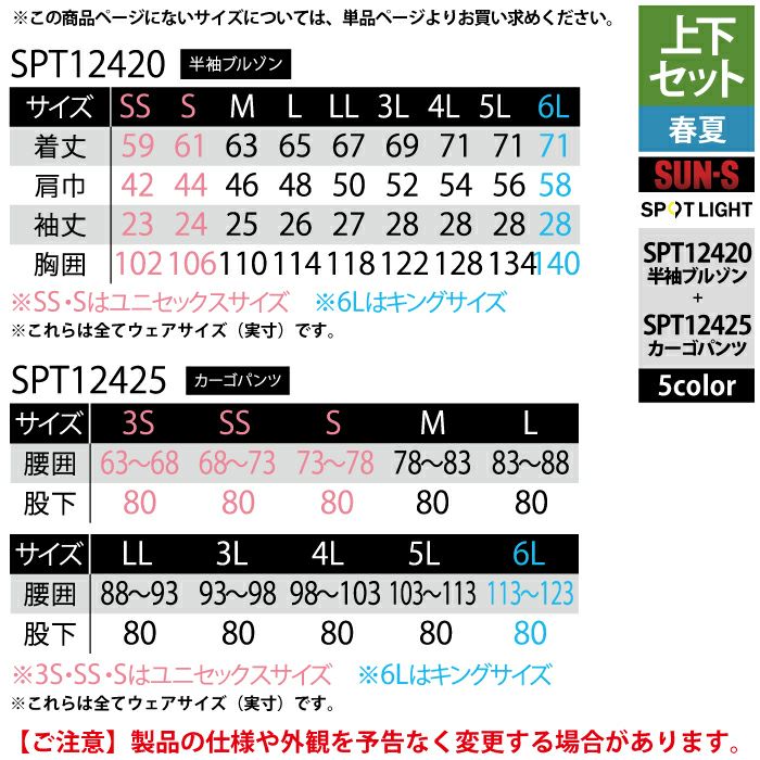 サンエス 作業服 作業着 サンエス 作業服 上下セット 春夏 SPT12420 半袖シャツM-3L と SPT12425 カーゴパンツ 3S-3L 作業ズボン 作業着