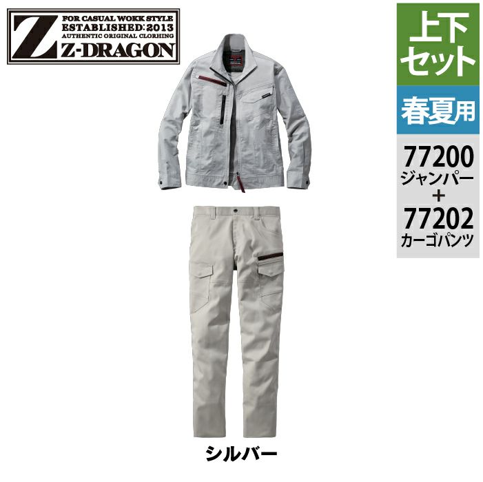 自重堂 作業服 作業着 自重堂 作業服 上下セット Z-DRAGON 春夏 77200 エコ製品制電ストレッチ長袖ジャンパー と 77202 エコ製品制電ストレッチノータックカーゴパンツ