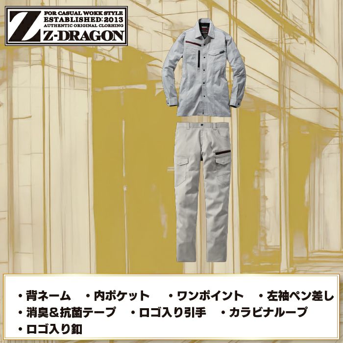 自重堂 作業服 作業着 自重堂 作業服 上下セット Z-DRAGON 春夏 77404 長袖シャツ と 77402 エコストレッチノータックカーゴパンツ 作業ズボン 作業着