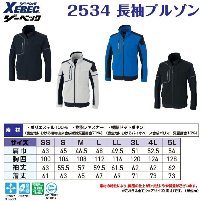 ジーベック 作業服 作業着 ジーベック XEBEC 作業服 春夏 2534 長袖ブルゾン 4L-5L 作業着