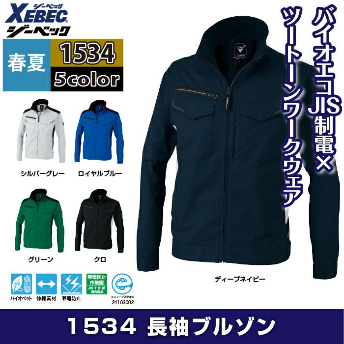 ジーベック 作業服 作業着 ジーベック XEBEC 作業服 春夏 1534 長袖ブルゾン SS-LL 作業着