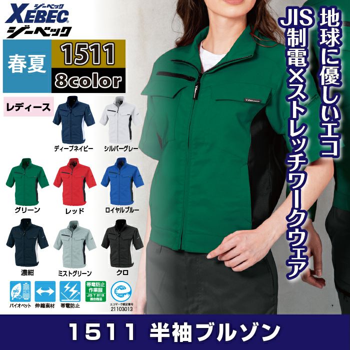 ジーベック 作業服 作業着 ジーベック XEBEC 作業服 春夏 1511 半袖ブルゾン SS-LL 作業着