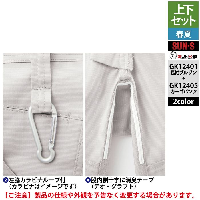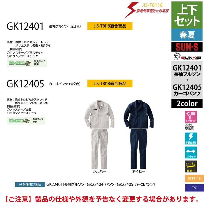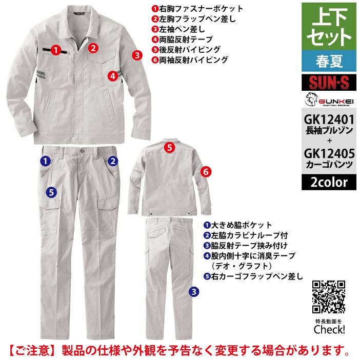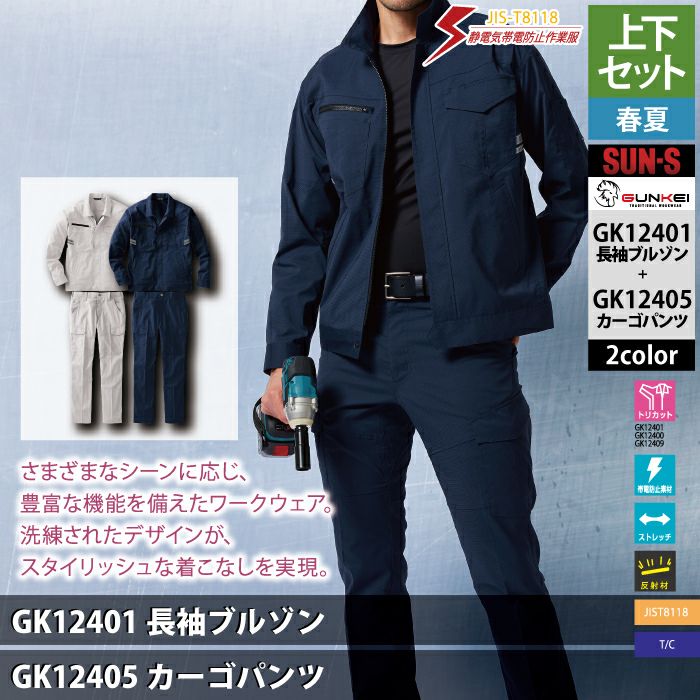 サンエス 作業服 作業着 サンエス 作業服 上下セット 春夏 GK12401 長袖ブルゾンSS-3L と GK12405 カーゴパンツ 62-100 作業ズボン 作業着