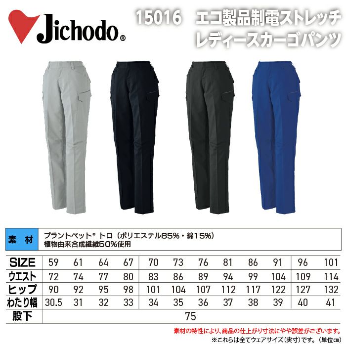 自重堂 作業服 作業着 自重堂 作業服 春夏 15016 エコ製品制電ストレッチレディースカーゴパンツ(裏付) 81-101 作業ズボン 作業着