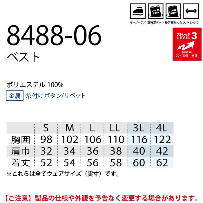 桑和 作業服 作業着 桑和 SOWA 作業服 8488-06 ベスト 3L 春夏用 作業着 ソーワ ワークウェア