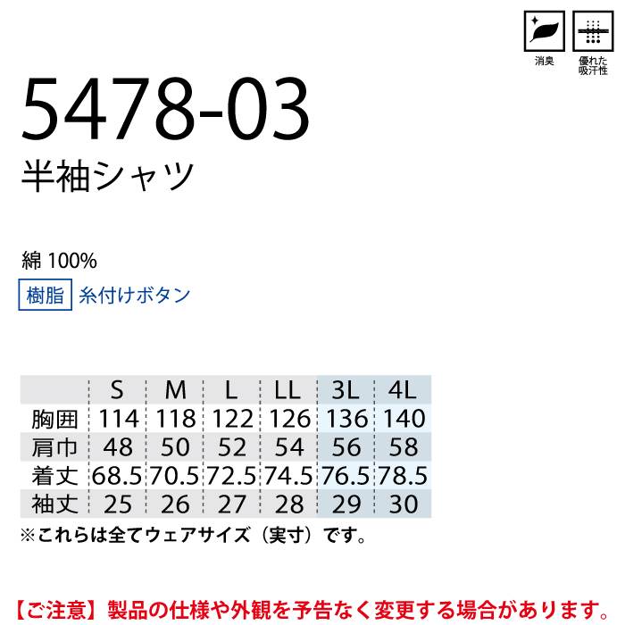 桑和 作業服 作業着 桑和 SOWA 作業服 5478-03 半袖シャツ 3L 春夏用 作業着 ソーワ ワークウェア