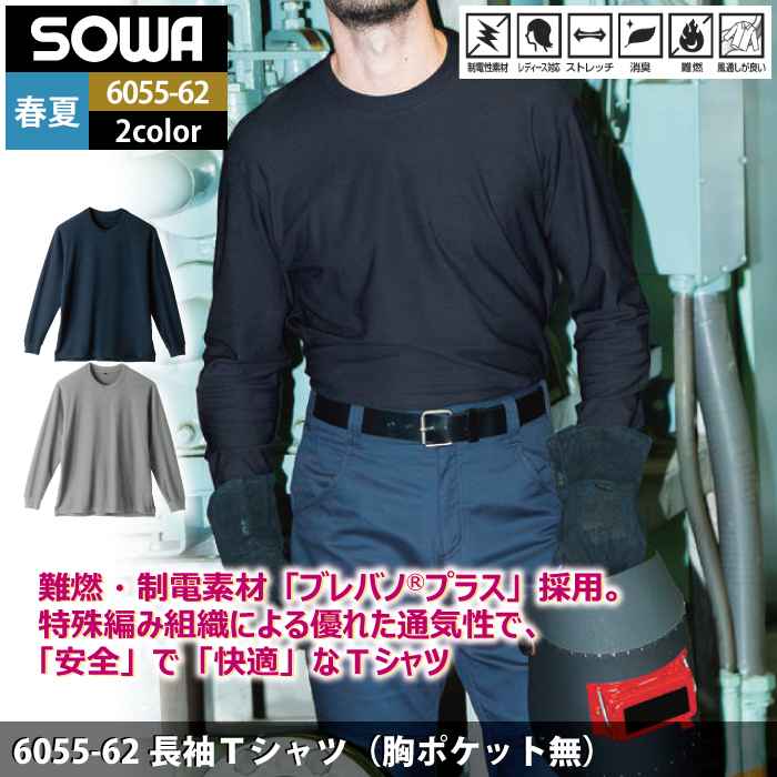桑和 作業服 作業着 桑和 SOWA 作業服 6055-62 長袖Tシャツ胸ポケ無難燃 SS-3L 春夏用 作業着 ソーワ ワークウェア