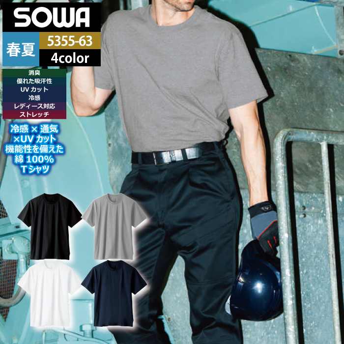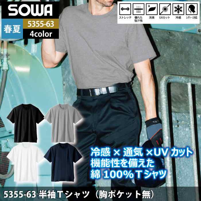桑和 作業服 作業着 桑和 SOWA 作業服 5355-63 半袖Tシャツ(胸ポケット無) SS-3L 春夏用 作業着 ソーワ ワークウェア