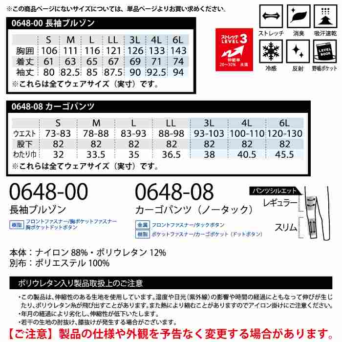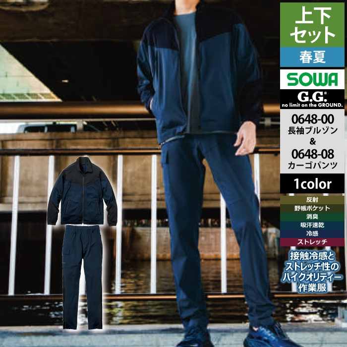 桑和 作業服 作業着 桑和 SOWA 作業服 上下セット 0648-00 長袖ブルゾンS-3L と 0648-08 カーゴパンツ(ノータック) S-3L 作業着 作業ズボン 春夏用