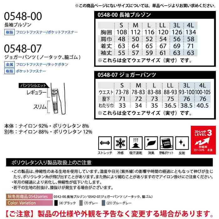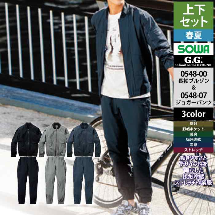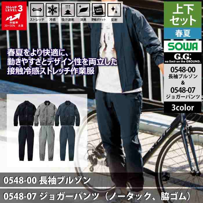 桑和 作業服 作業着 桑和 SOWA 作業服 上下セット 0548-00 長袖ブルゾンS-3L と 0548-07 ジョガーパンツ(ノータック脇ゴム) S-3L 作業着 作業ズボン 春夏用