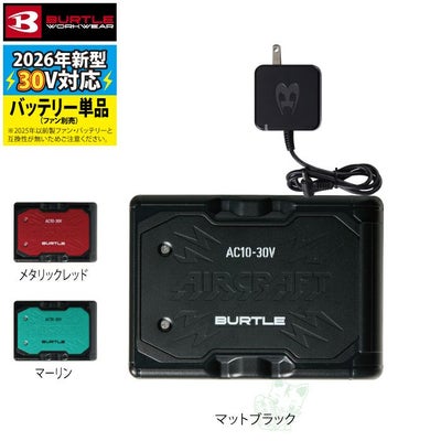 マットブラックは即日発送 【予約&一部即日】バートル BURTLE 2026春夏新作 エアークラフト AC10 新型30Vリチウムイオンバッテリー 単品 AIRCRAFT 京セラ製 バッテリー 作業服 作業着
