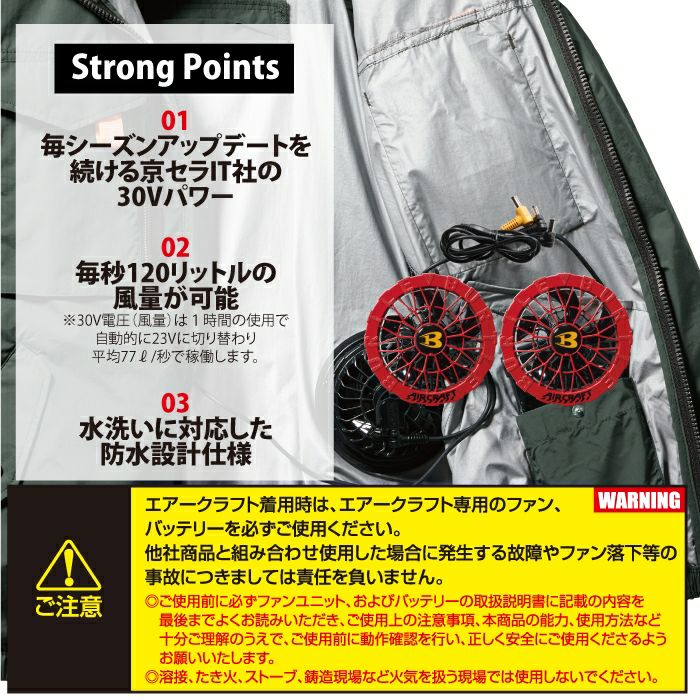 ● エアークラフト着用時はエアークラフト専用のファン・バッテリーを必ずご使用ください