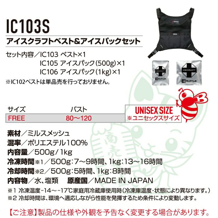◇セット内容:IC103ベスト×1・IC105アイスパック(500g)×1・IC106アイスパック(1kg)×1