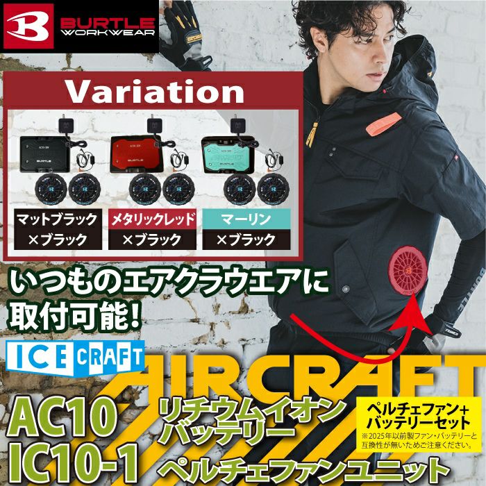 2026SS最新アイスクラフトペルチェバッテリーセット 【予約】バートル BURTLE 2026春夏新作 アイスクラフト AC10 + IC10-1 新型30Vバッテリーペルチェセット 作業着 株式会社空調服 製品と互換性なし