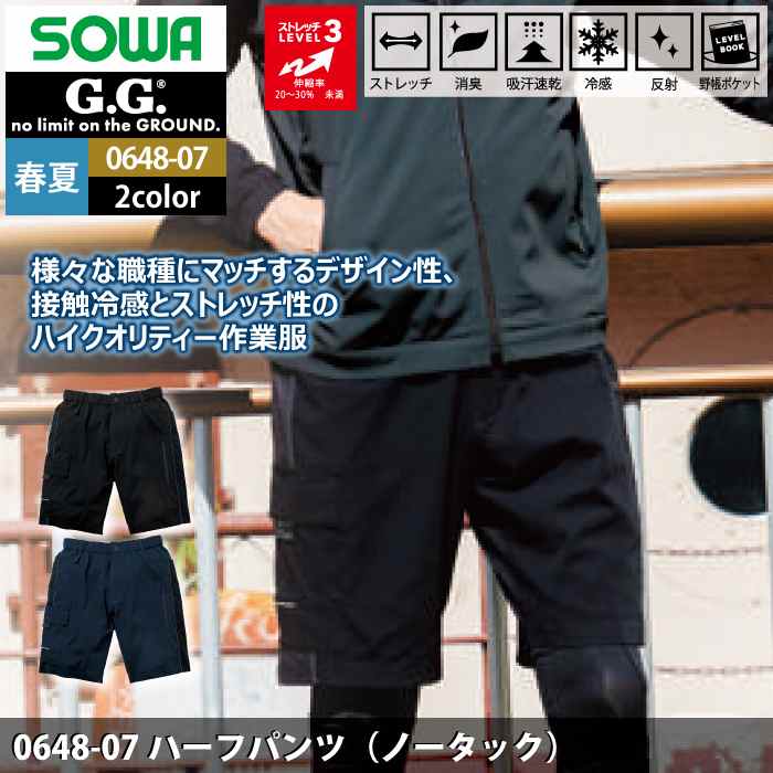 桑和 作業服 作業着 桑和 SOWA 作業服 0648-07 ハーフパンツ(ノータック) S-LL 春夏用 作業着 ソーワ ワークウェア