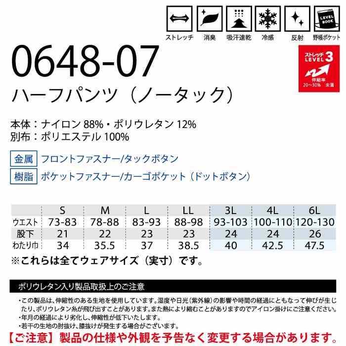 桑和 作業服 作業着 桑和 SOWA 作業服 0648-07 ハーフパンツ(ノータック) 6L 春夏用 作業着 ソーワ ワークウェア