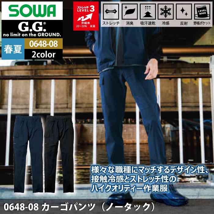 桑和 作業服 作業着 桑和 SOWA 作業服 0648-08 カーゴパンツ(ノータック) S-LL 春夏用 作業着 ソーワ ワークウェア