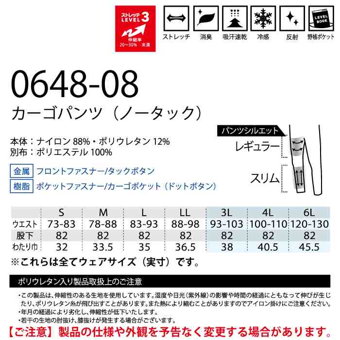 桑和 作業服 作業着 桑和 SOWA 作業服 0648-08 カーゴパンツ(ノータック) 3L 春夏用 作業着 ソーワ ワークウェア