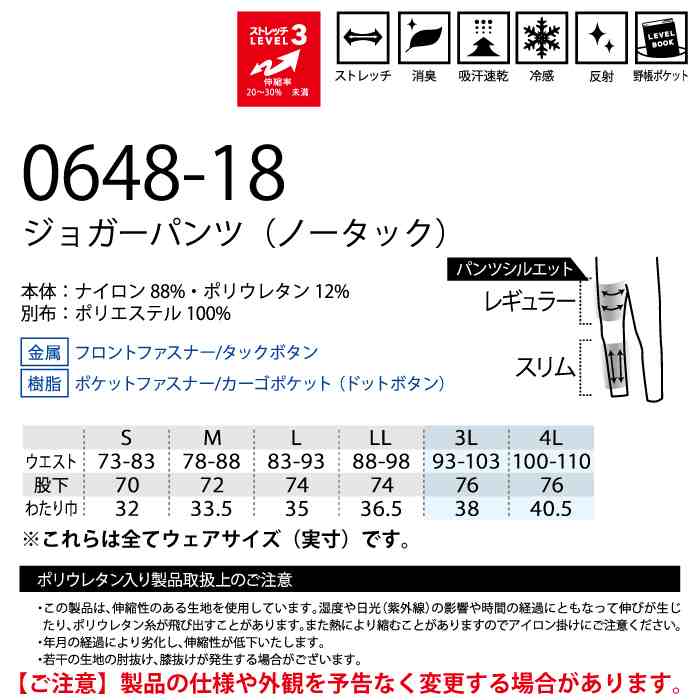 桑和 作業服 作業着 桑和 SOWA 作業服 0648-18 ジョガーパンツ(ノータック) 3L 春夏用 作業着 ソーワ ワークウェア