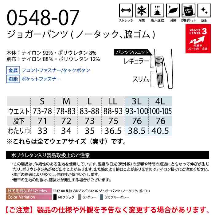 桑和 作業服 作業着 桑和 SOWA 作業服 0548-07 ジョガーパンツ(ノータック脇ゴム) 3L 春夏用 作業着 ソーワ ワークウェア