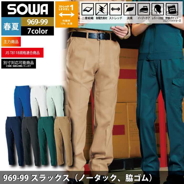 桑和 作業服 作業着 桑和 SOWA 作業服 969-99 スラックス(ノータック脇ゴム) 3L 春夏用 作業着 ソーワ ワークウェア