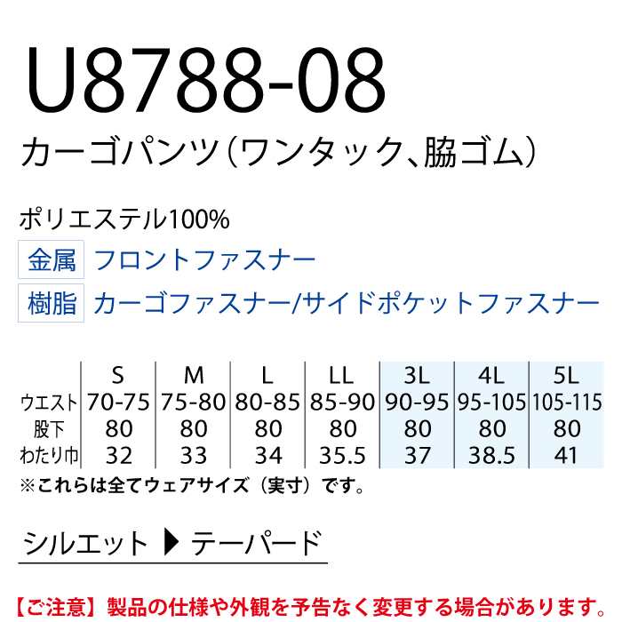 他の画像を見る 桑和 作業服 作業着 桑和 SOWA 作業服 U8788-08 カーゴパンツ(ワンタック脇ゴム) 5L 春夏用 作業着 ソーワ ワークウェア WEB特別価格 ¥ 8,129 税込 期間限定!会員特別価格 ¥ 8,079 税込 在庫切れ カートに入れる お気に入りに登録する