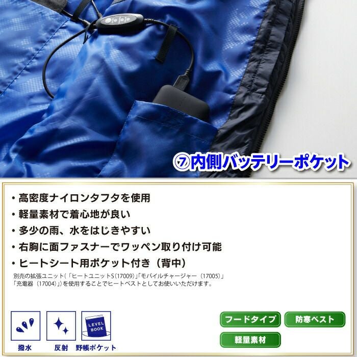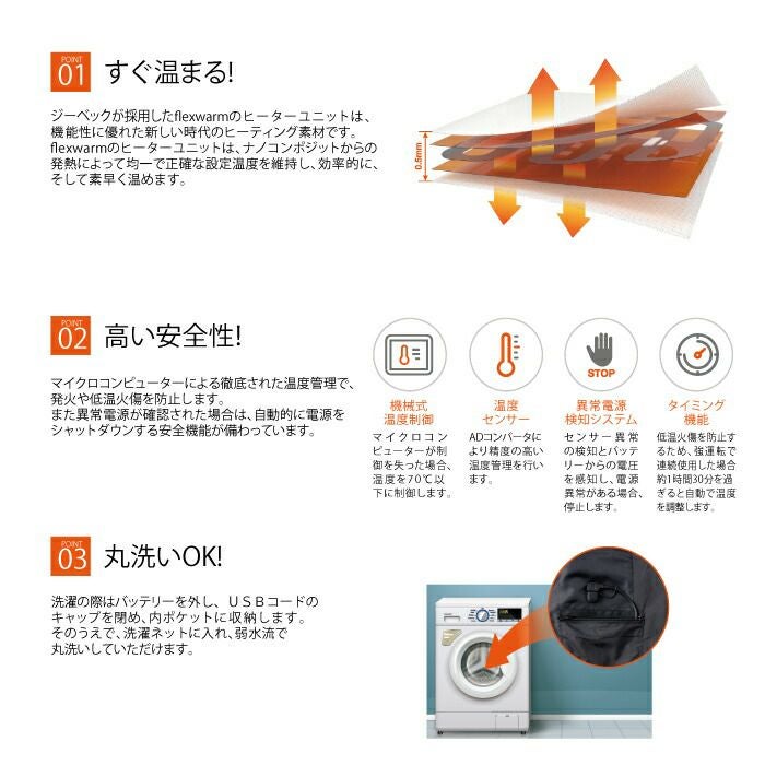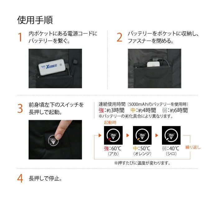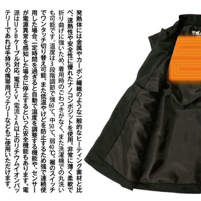 お手持ちのモバイルバッテリーでも動作するヒーター内蔵ウェア