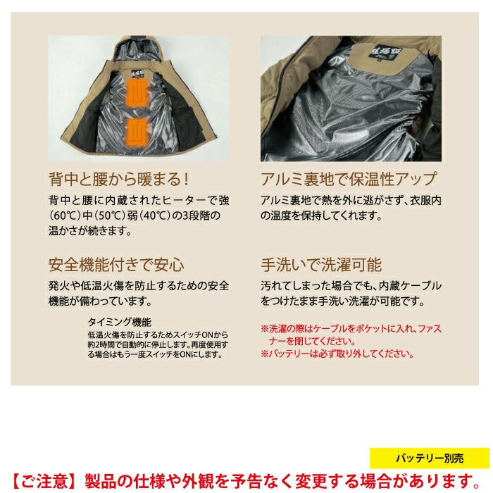 ウェアとバッテリーとヒーターがセットになったフルセット