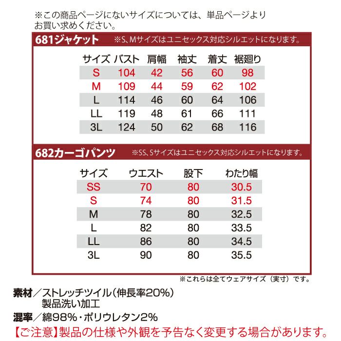 バートル 上下セット作業服一覧