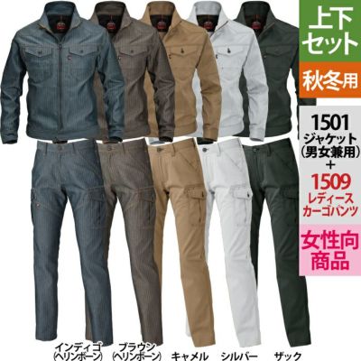 バートル BURTLE 作業着 上下セット 1501ジャケットと1509レディースカーゴパンツ S-LL 作業服 おしゃれ 秋冬