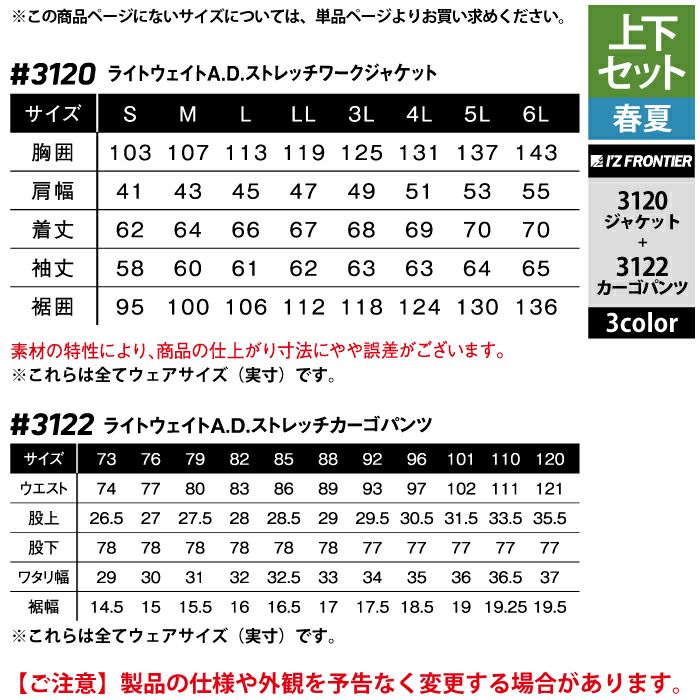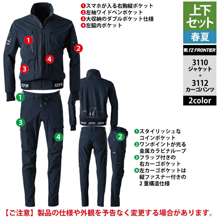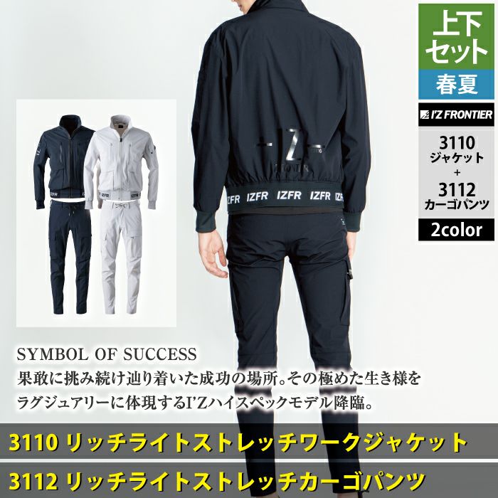 アイズフロンティア 作業服 作業着 上下セット アイズフロンティア 作業服 上下セット 3110 リッチライトストレッチワークジャケットS-3L と 3112 リッチライトストレッチカーゴパンツ SS-3L 春夏用