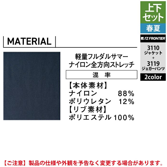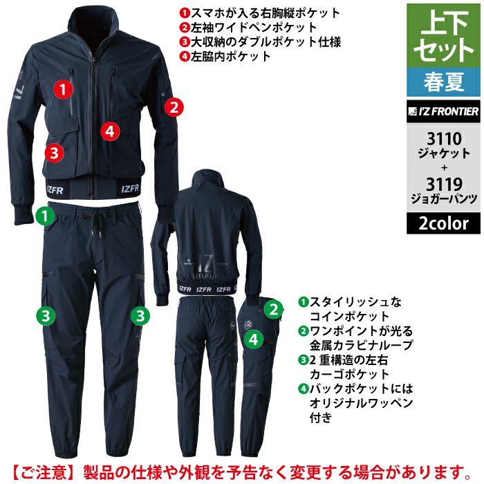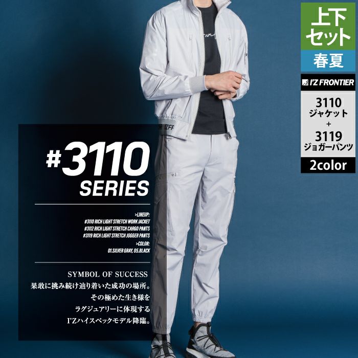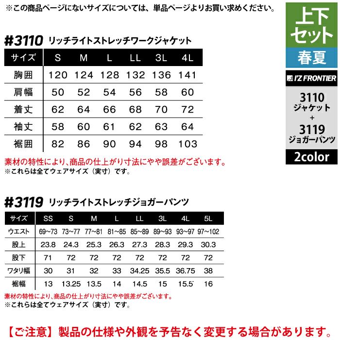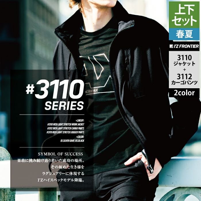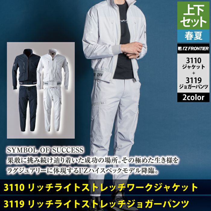 アイズフロンティア 作業服 作業着 上下セット アイズフロンティア 作業服 上下セット 3110 リッチライトストレッチワークジャケットS-3L と 3119 リッチライトストレッチジョガーパンツ SS-3L 春夏用
