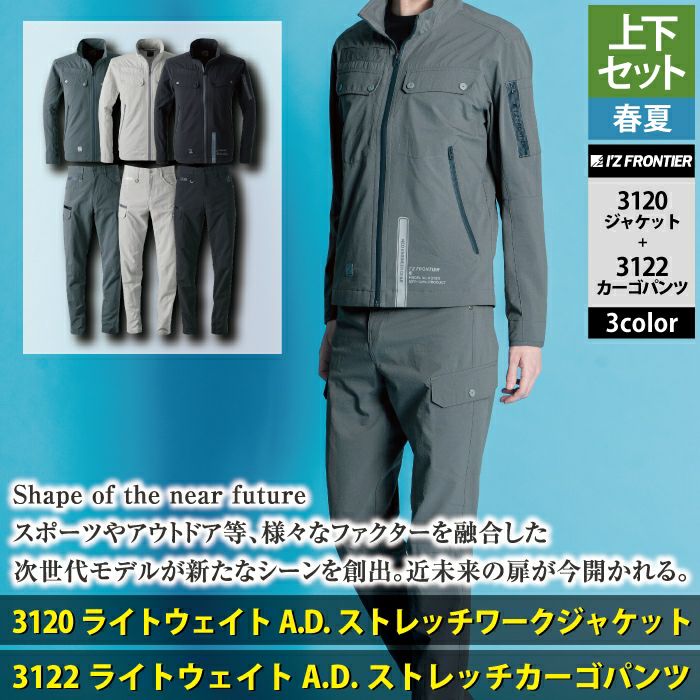 アイズフロンティア 作業服 作業着 上下セット アイズフロンティア 作業服 上下セット 3120 ライトウェイトADストレッチワークジャケットS-3L と 3122 ライトウェイトADストレッチカーゴパンツ 73-101 春夏用