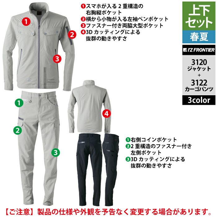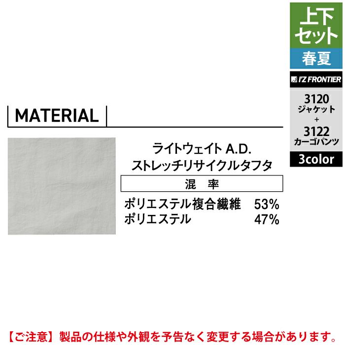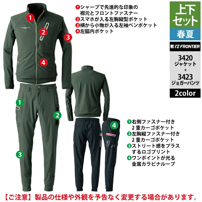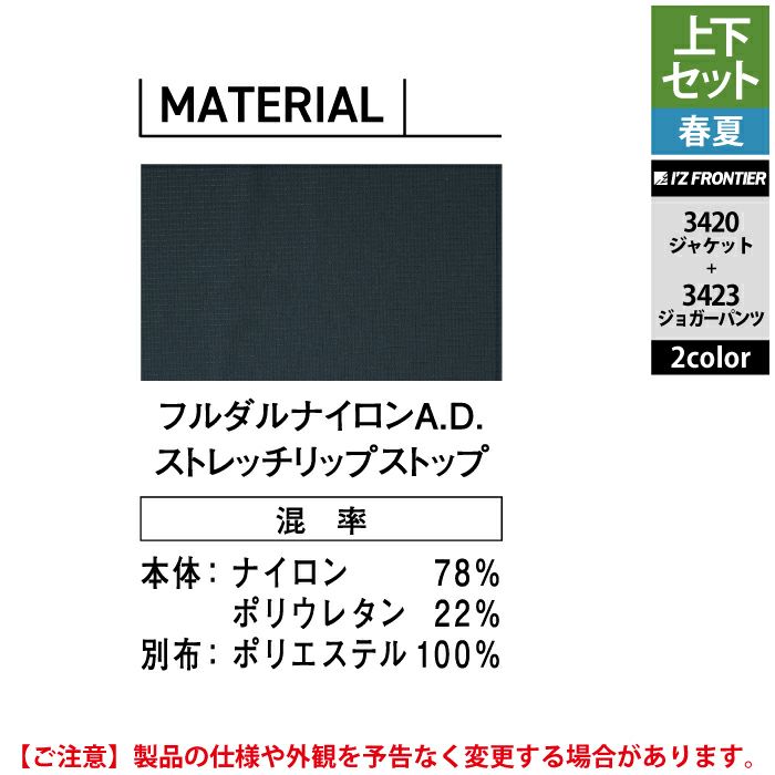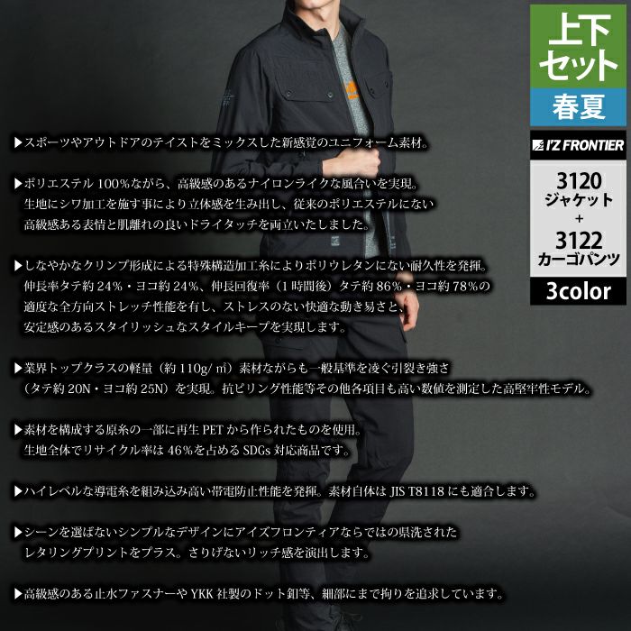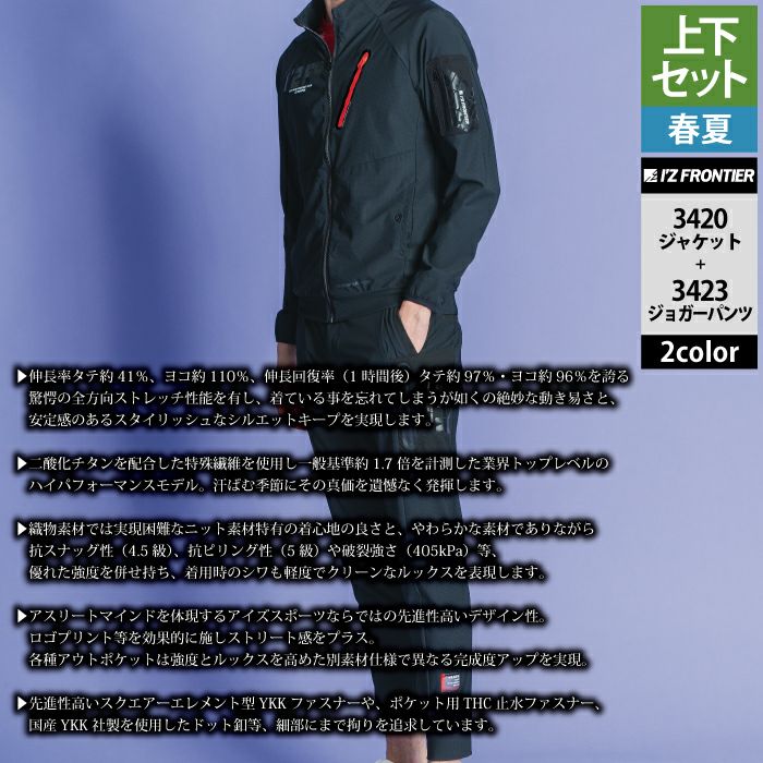 アイズフロンティア 作業服 作業着 上下セット アイズフロンティア 作業服 上下セット 3420 ファンタスティックストレッチワークジャケット と 3423 ファンタスティックストレッチジョガーパンツ 春夏用