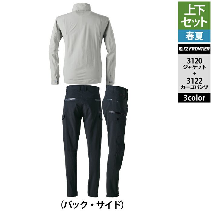 アイズフロンティア 作業服 上下セット 3570 ジャケット と 3572 カーゴパンツ ツイル ストレッチ ナイロン スポーティ UVカット 春夏秋冬