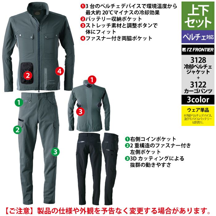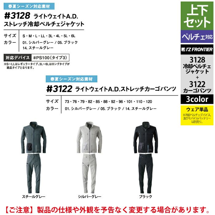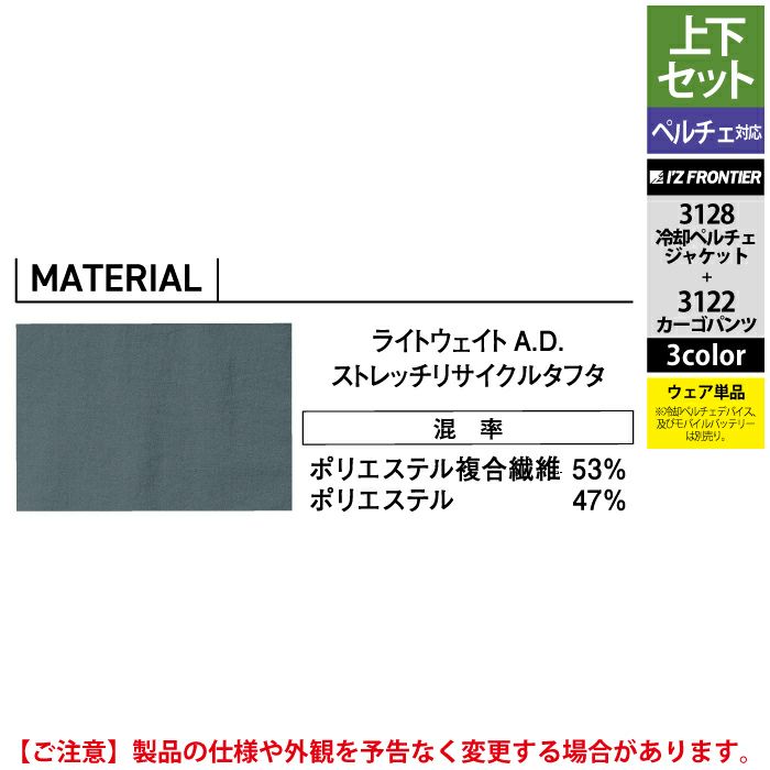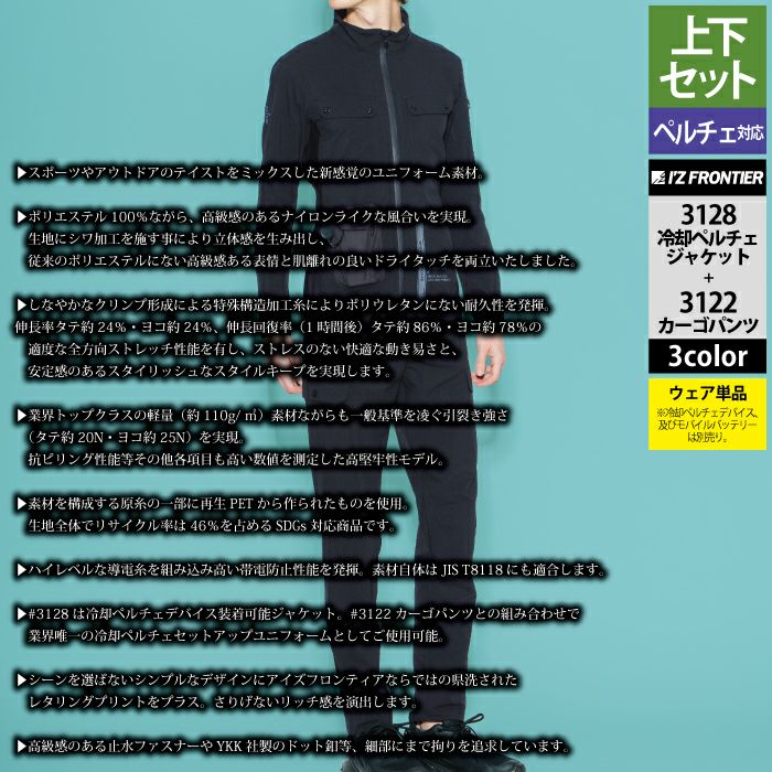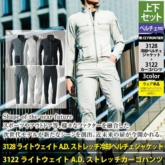 アイズフロンティア 作業服 作業着 作業ズボン アイズフロンティア 作業服 上下セット 3128 ライトウェイトADストレッチ冷却ペルチェジャケット と 3122 ライトウェイトADストレッチカーゴパンツ 春夏用