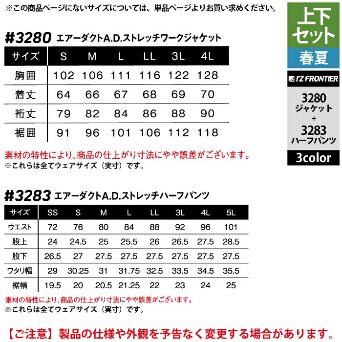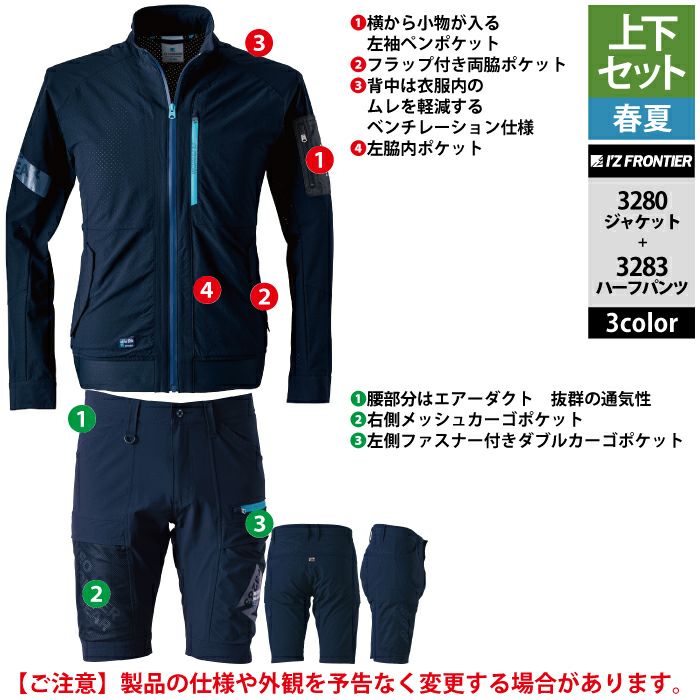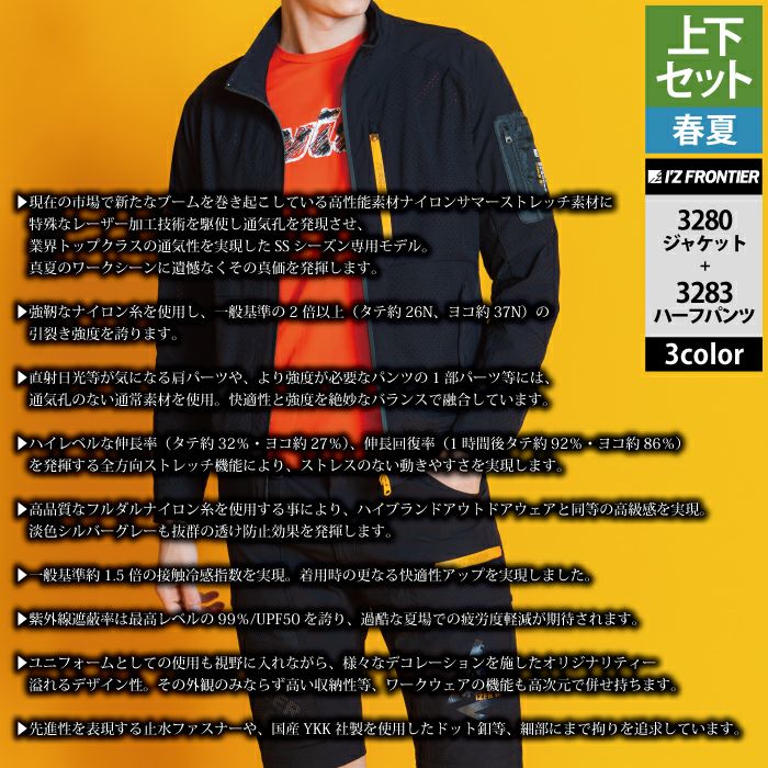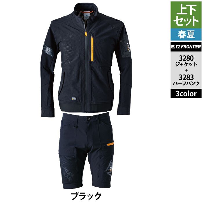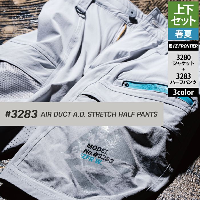 アイズフロンティア 作業服 作業着 上下セット アイズフロンティア 作業服 上下セット 3280 エアーダクトADストレッチワークジャケットS-3L と 3283 エアーダクトADストレッチハーフパンツ SS-3L 春夏用
